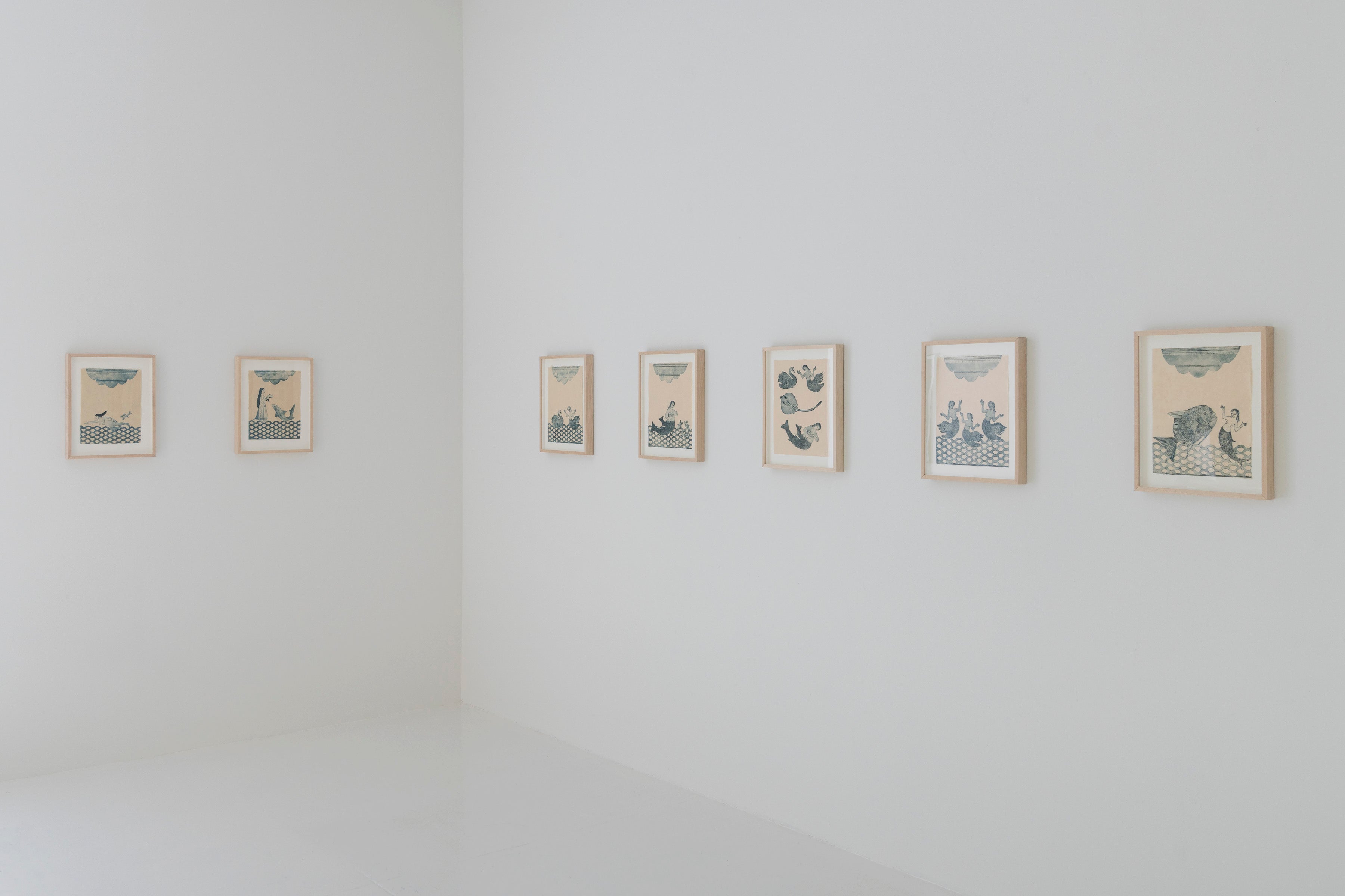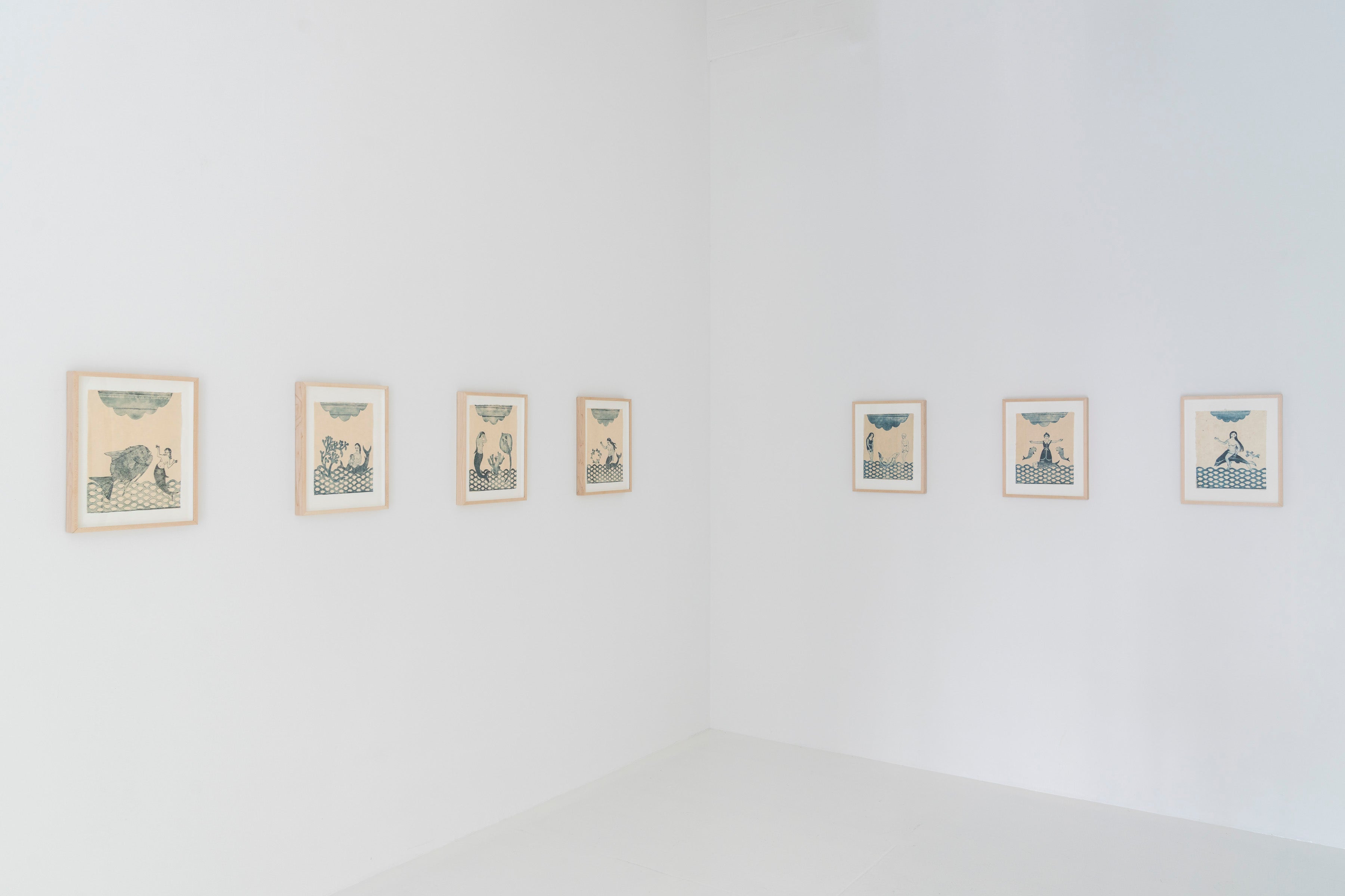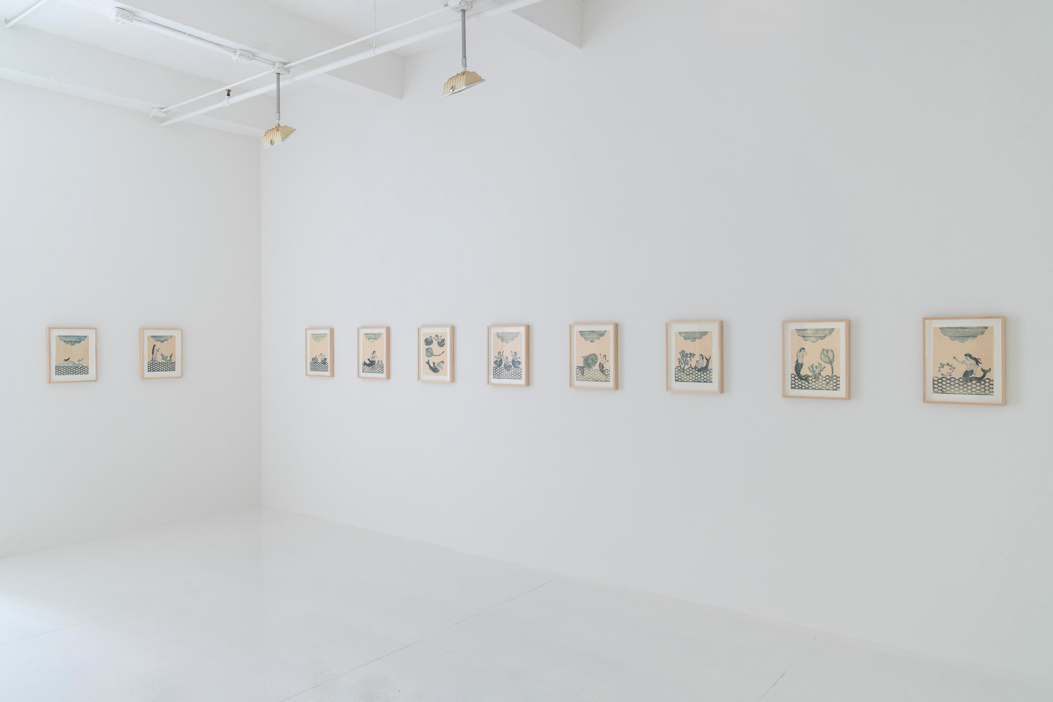 The imagery in Swimmers originates from Drescher’s notebook sketches, which have over time evolved into a growing compendium of characters and narratives. Due to the delicate nature of the plates, each can produce only a limited number of unique impressions, underscoring the work’s material vulnerability and impermanence.