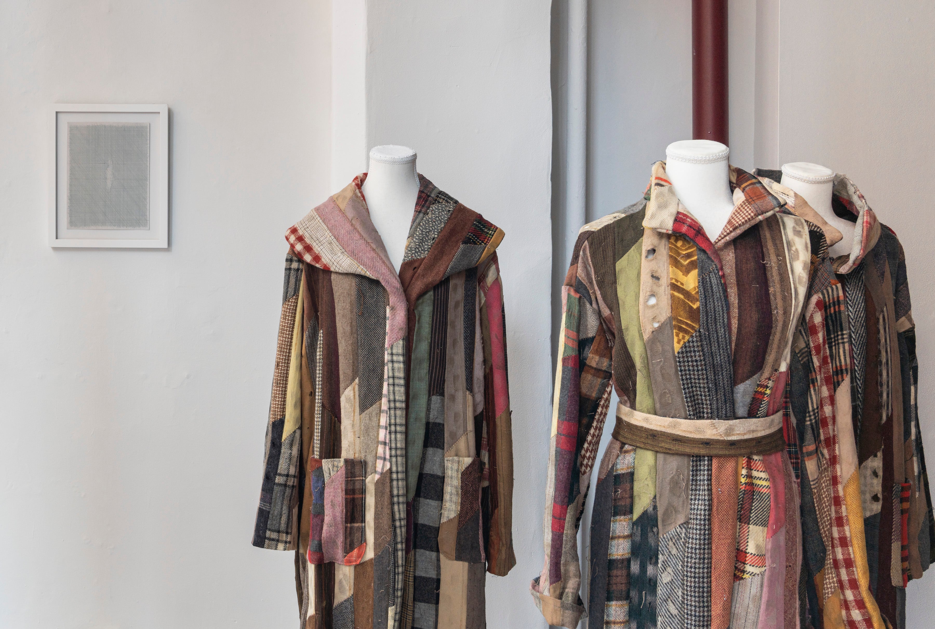 Duffy keeps remnants of the original rug visible to evoke the cyclical act of braiding and unbraiding—a metaphor for transformation, survival, and renewal. The twelve coats featured in the exhibition are made from a single worn rug inspired by the Silent Sentinels—over 2,000 women who protested for women’s right to vote between 1917 and 1919. These women stood in front of the White House, twelve at a time, for two and a half years. Many of the women faced incarceration for demanding equality. These coats honor their steadfast courage and the resilience of women throughout history.
