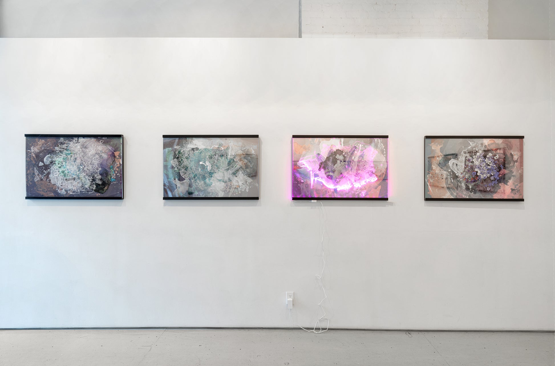 Meanwhile, nature plays the same game on a larger, longer scale—moving earth, water, and air to form landscapes through erosion, flooding, etc. These pieces are inspired by both these concepts—the time-bound changes of nature and the color, motion, and layers of city life.