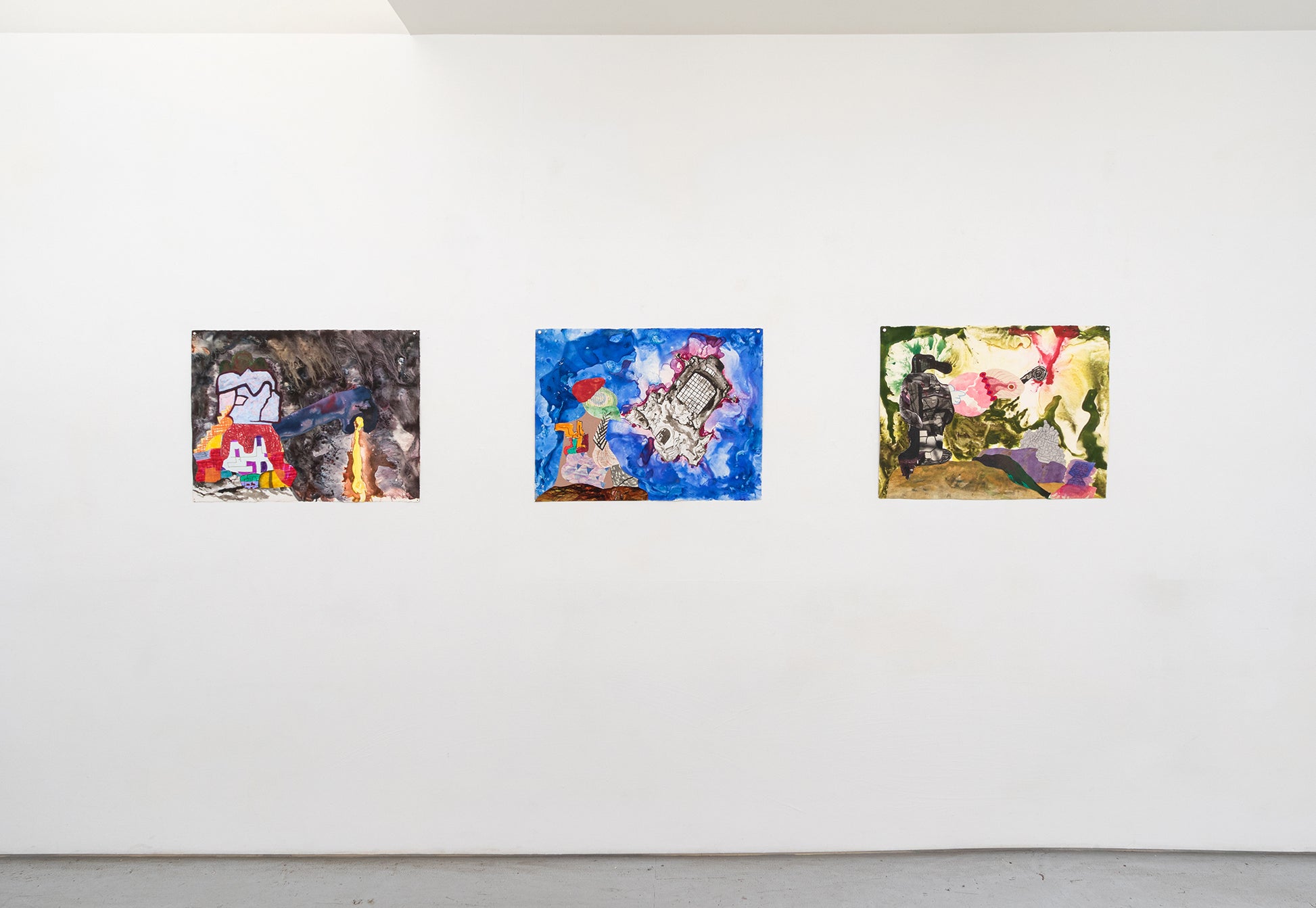 Watercolor monoprint and collage of drawings on Rives BFK