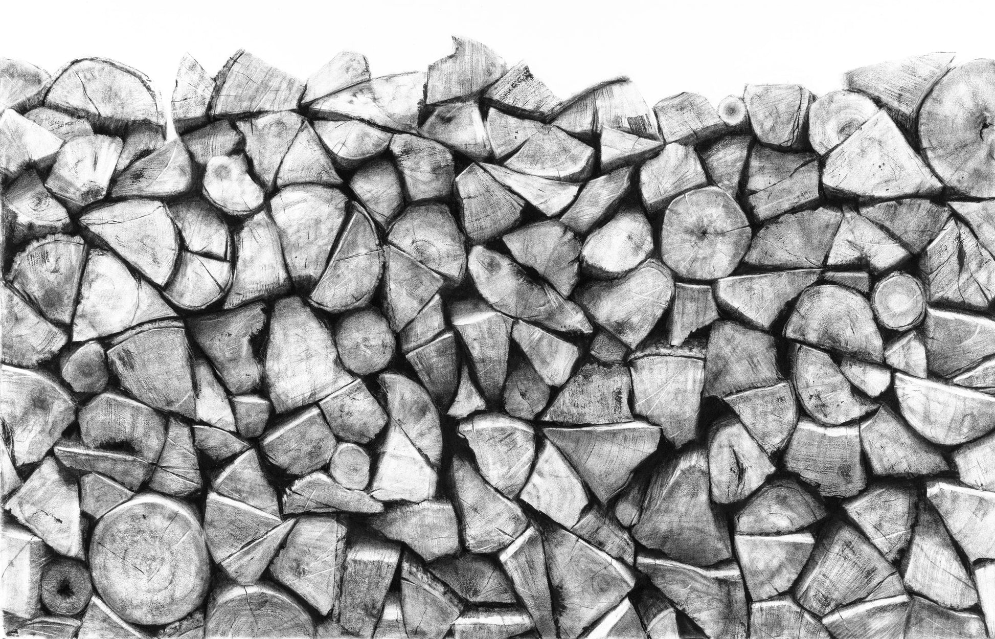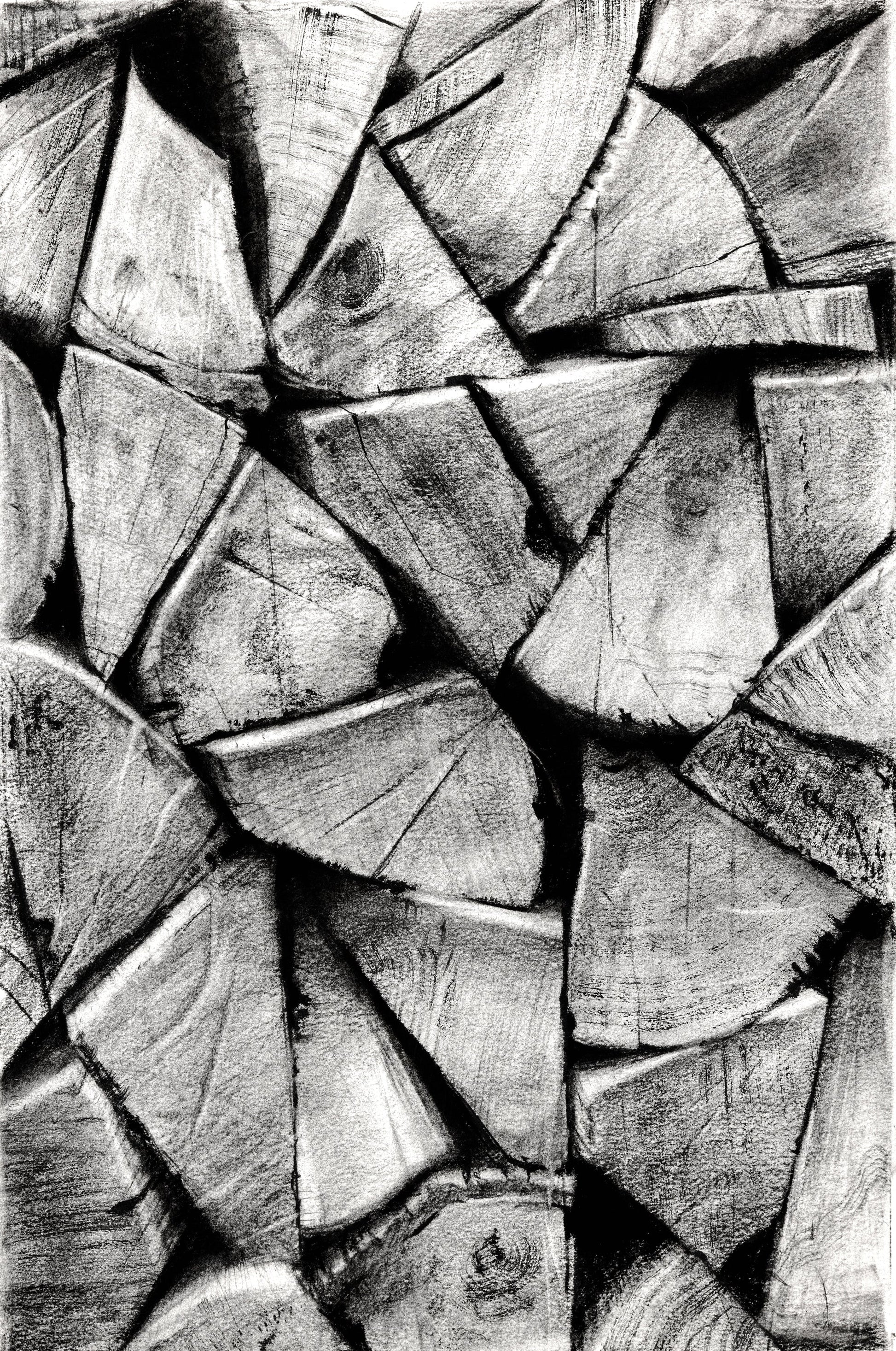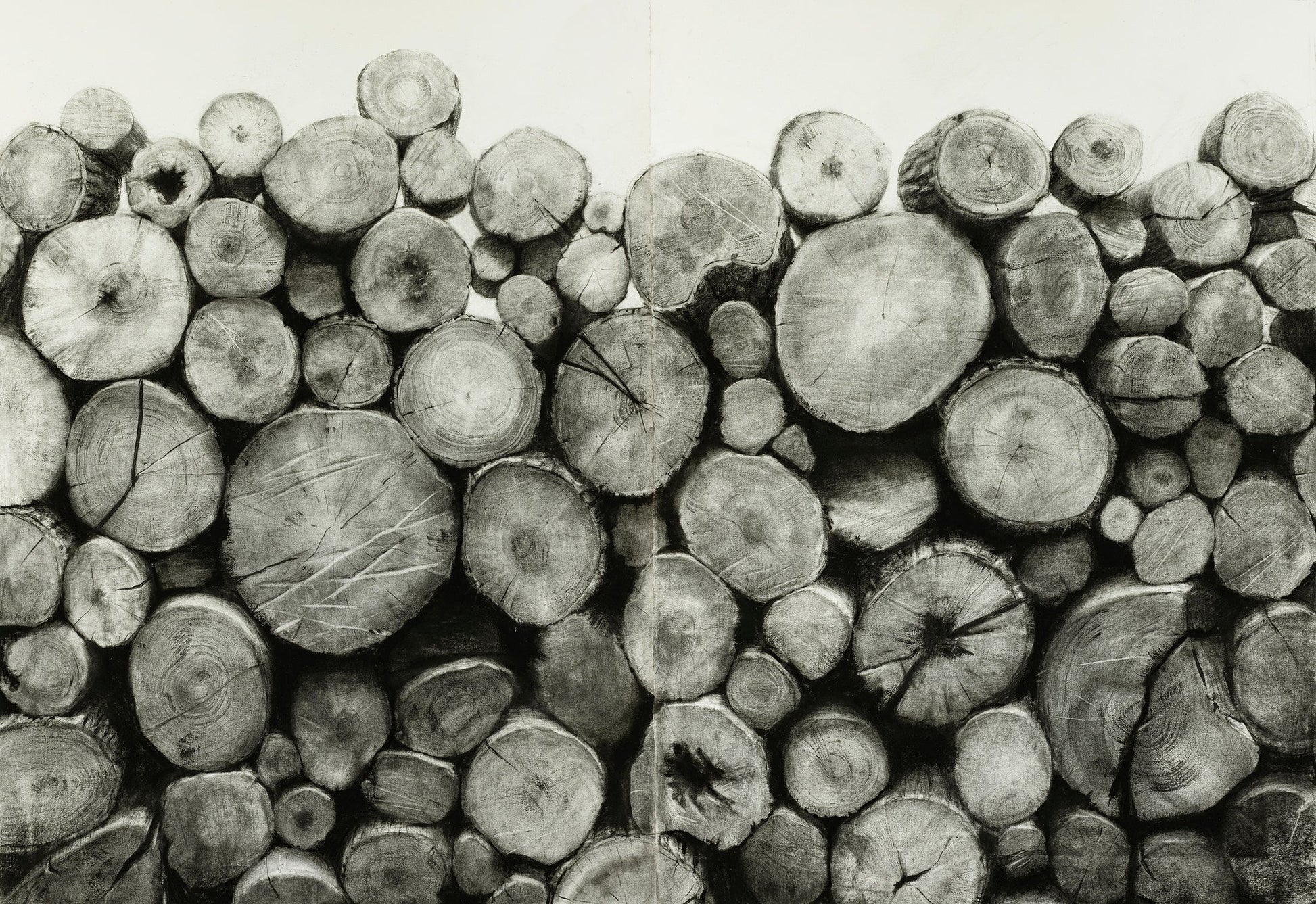 Through this series of drawings, David Soman explores the circular nature of material and subject. Soman finds a connection between charcoal, fire, and wood, and more largely between ourselves and the forest, creation with destruction, life with death, and wilderness and home. They are meditations in light and shadow, what's hidden and what's exposed, and the relationship between parts and the whole.