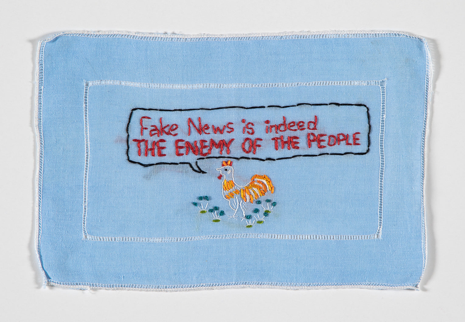 The Tiny Prick Textile is unframed. It will be shipped via UPS (domestically) and via USPS (internationally) insured and with signature required.
