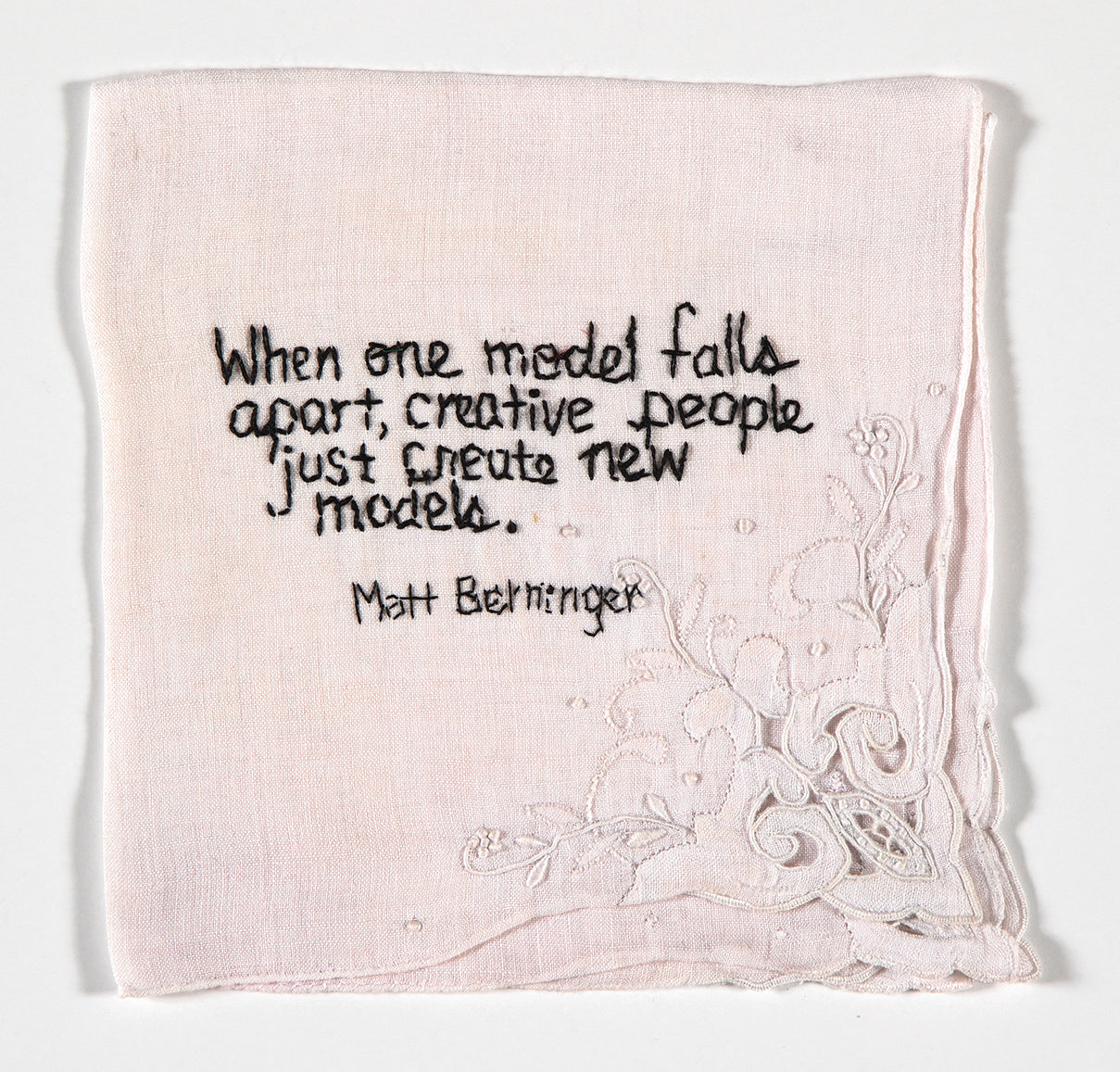 The Tiny Prick Textile is unframed. It will be shipped via UPS (domestically) and via USPS (internationally) insured and with signature required.