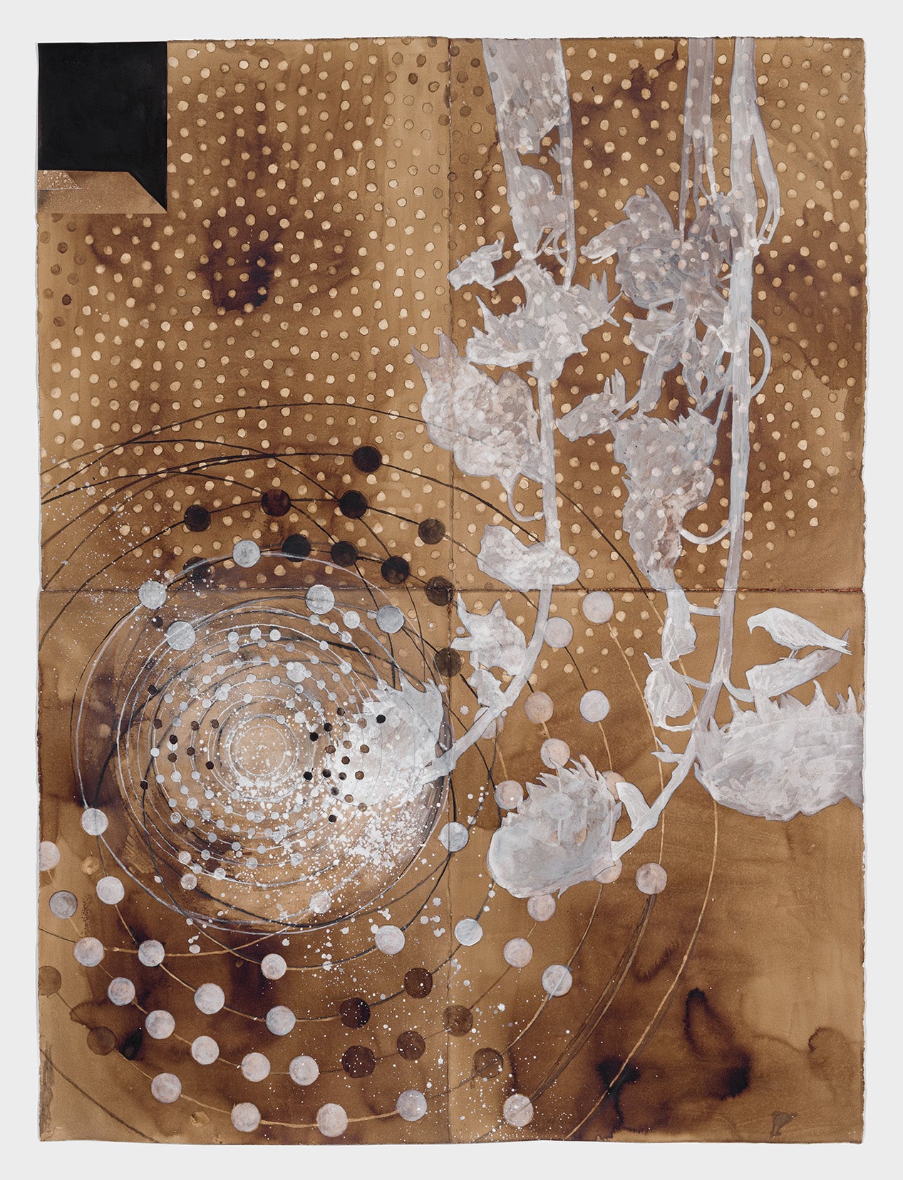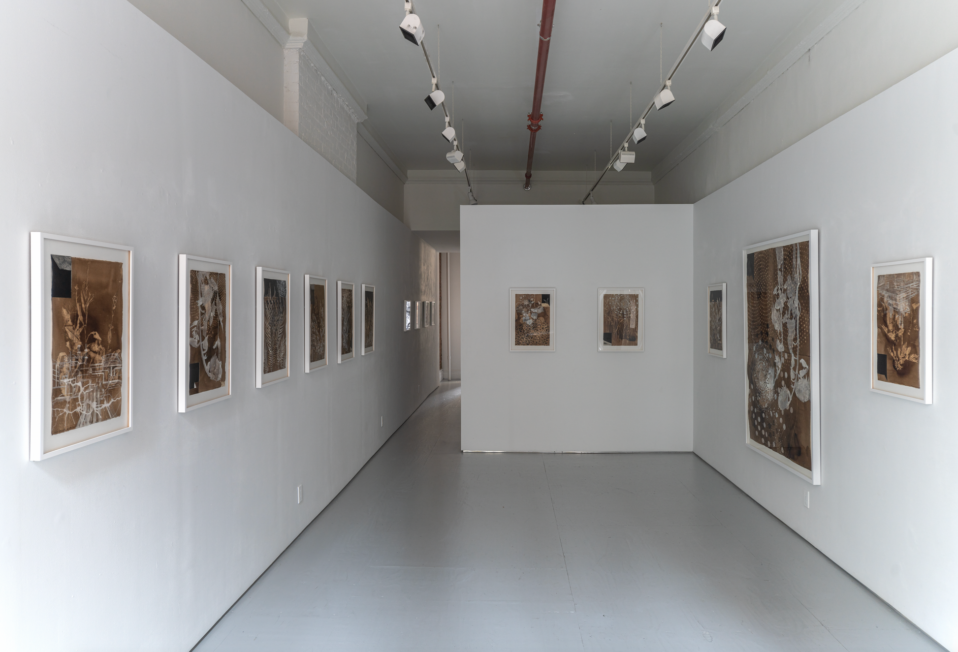 The drawings in the front room depict plants used in phytoremediation, a process wherein plants absorb, reduce, and clean up toxic contaminants in soil, water, or air. Sunflowers, mustard, vittata, pennycress, poplar, phragmites, Indian grass, and willow are plants used to clean up nitrogen, phosphorus, radiation, lead, cadmium, and other pollutants. The drawings explore the contemporary alchemy of this transformative biological process in an ongoing environmental crisis.