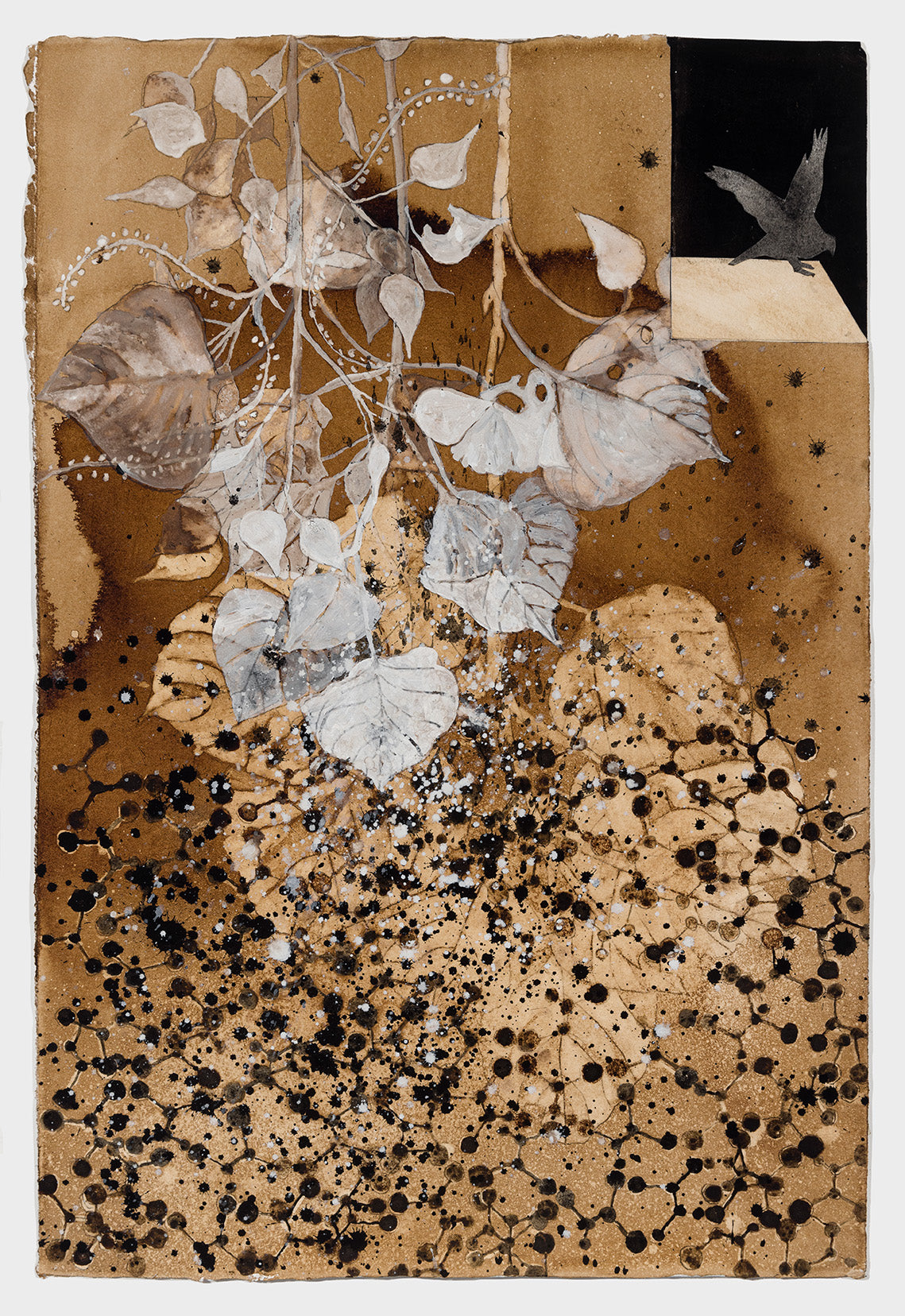 These new drawings by Ellen Driscoll emerged from a sense of interconnectedness between her recovery from a serious medical crisis and the more significant global environmental crisis brought on by global warming. Driscoll's slow healing found resonance and hope in the work of plants that remediate and mend ecological damage. Driscoll writes “Although a melting glacier may feel remote, I can smell the smoke drifting over New York City from fires in Canada, resulting from the same warming that is melting glaciers”. By weaving her own self-portrait into environmental landscapes, she enacts the inextricability Driscoll feels with these larger phenomena.