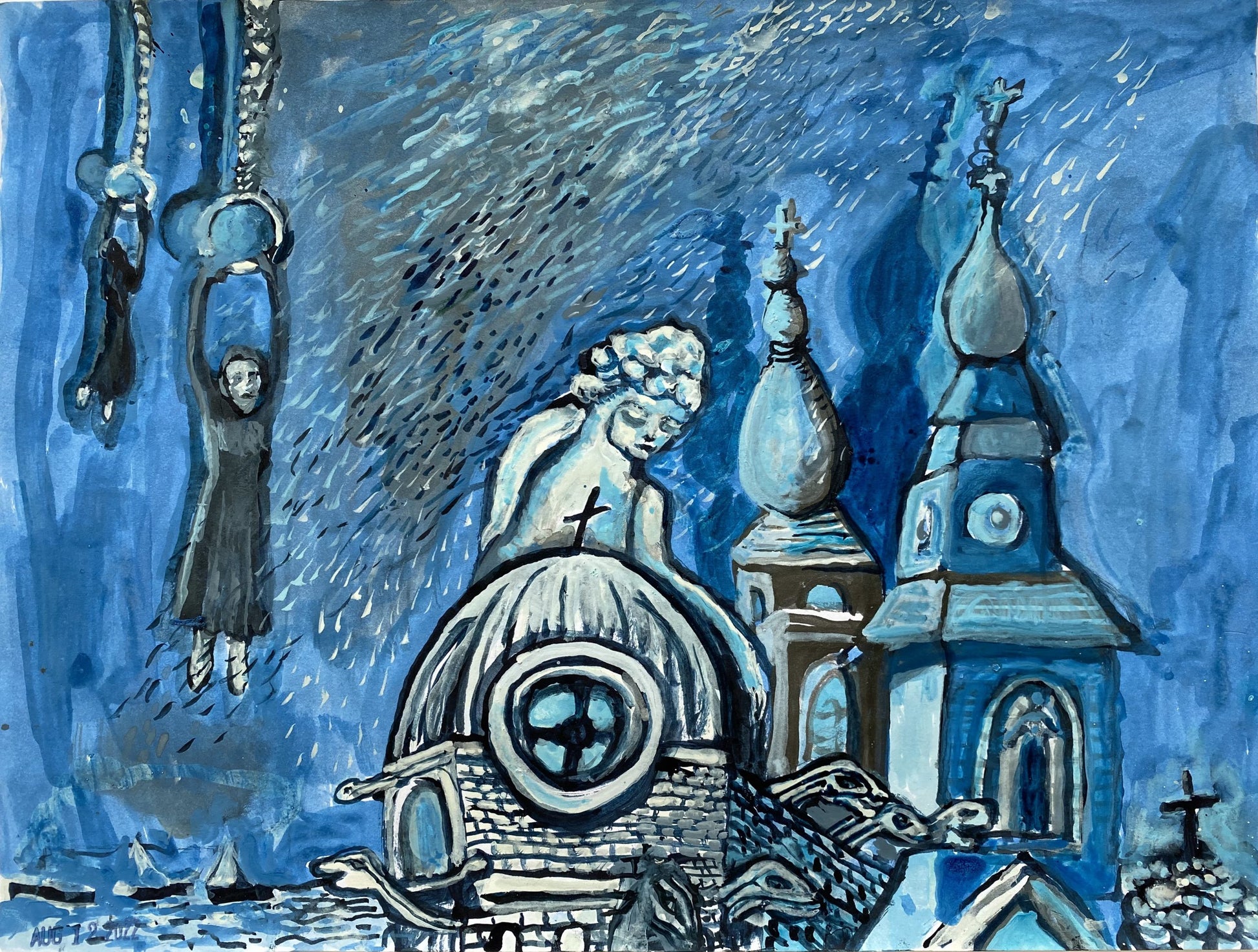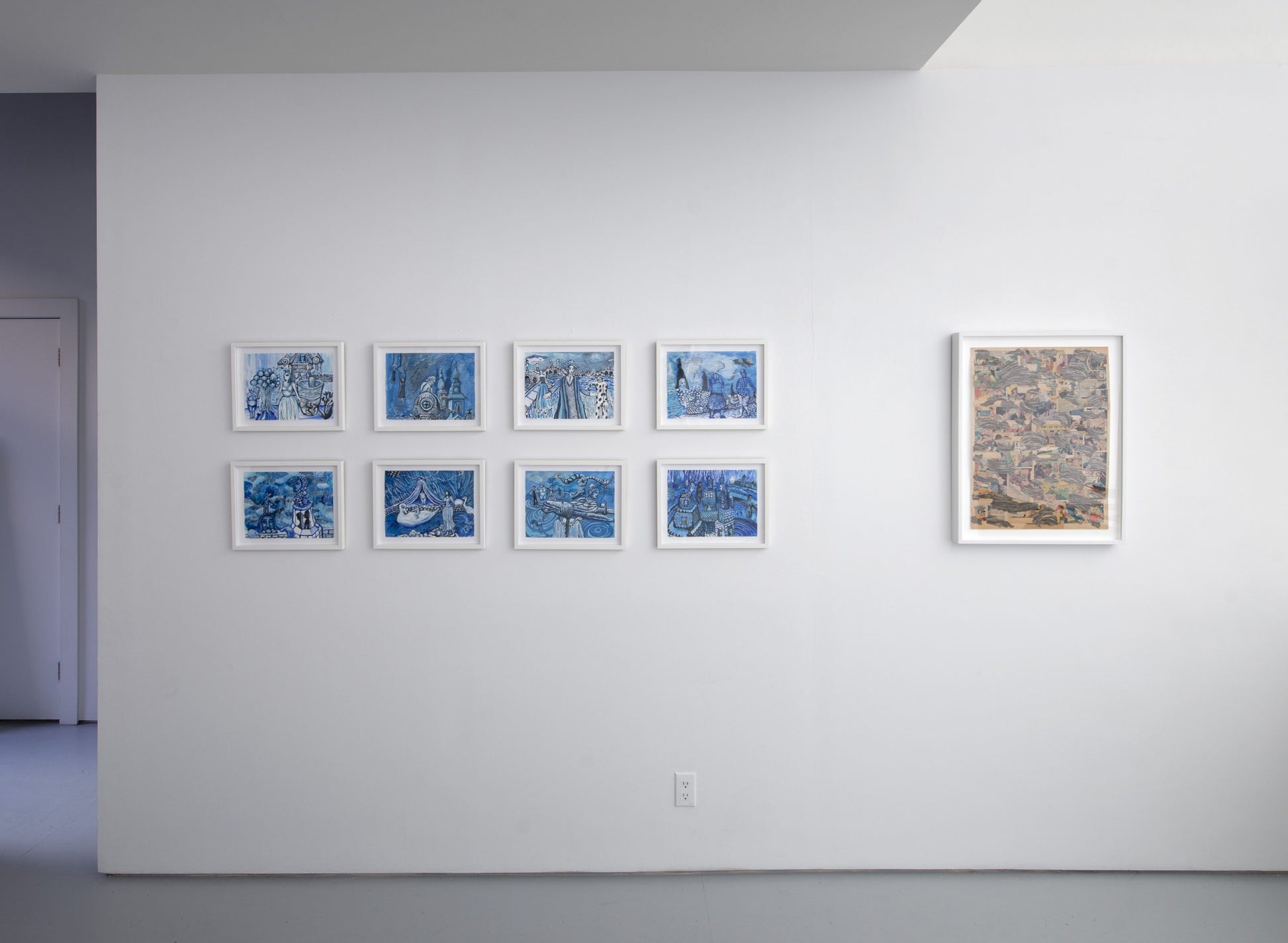 This first series of works on paper, my Rochester Blues, came from the first place I visited. The imagery emerged in different hues of blue. The juxtaposition of different blues became the subject as well as the light, mark, and form. The narratives flowed in sixteen related but separate images. The work continues in Portland, Naples, Maine, Nantucket, Tuckahoe, Boston, Olivebridge, Saugerties, NY, and now NYC.
