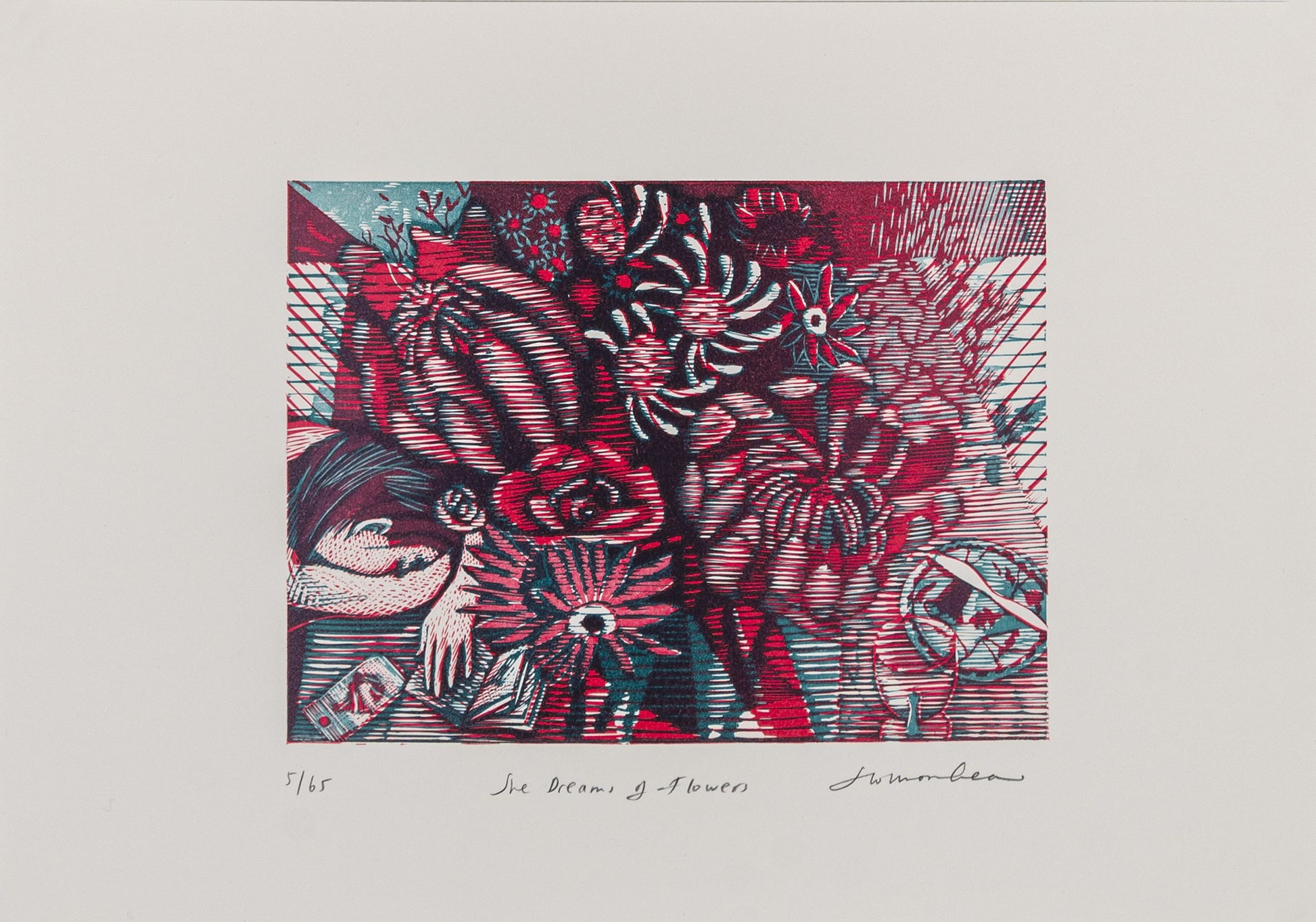 In 2016 I was invited to be a fellow at the Royal Academy School. This is renowned for being the world’s oldest art school, with a tiny cohort of students who bond over fantastic lunches and a sense of tight companionship. There, I started this project. I set the parameters as follows: each print would be made with two blocks measuring 8 x 6 inches and talk of personal, lived experiences. I also wanted to make work that was funny, informal, colorful, and that would entertain, but with hidden clues that speak of a deeper conversation. Since then, I’ve made this series of prints documenting intimate moments of contemplation and commenting on life as a woman living in London through the Covid years.