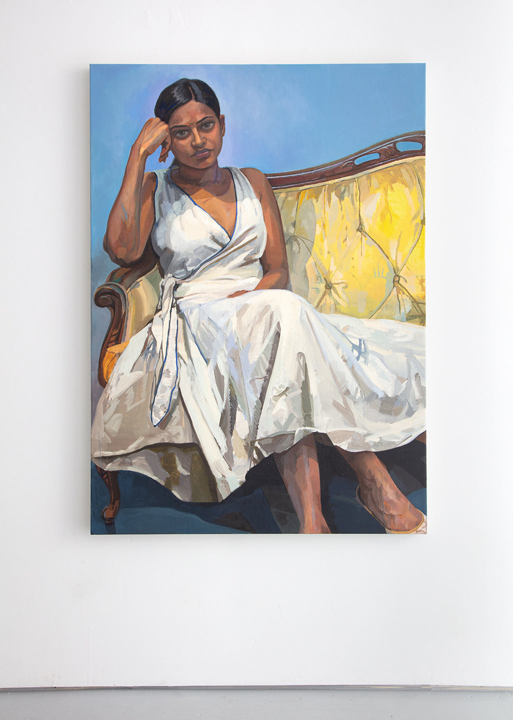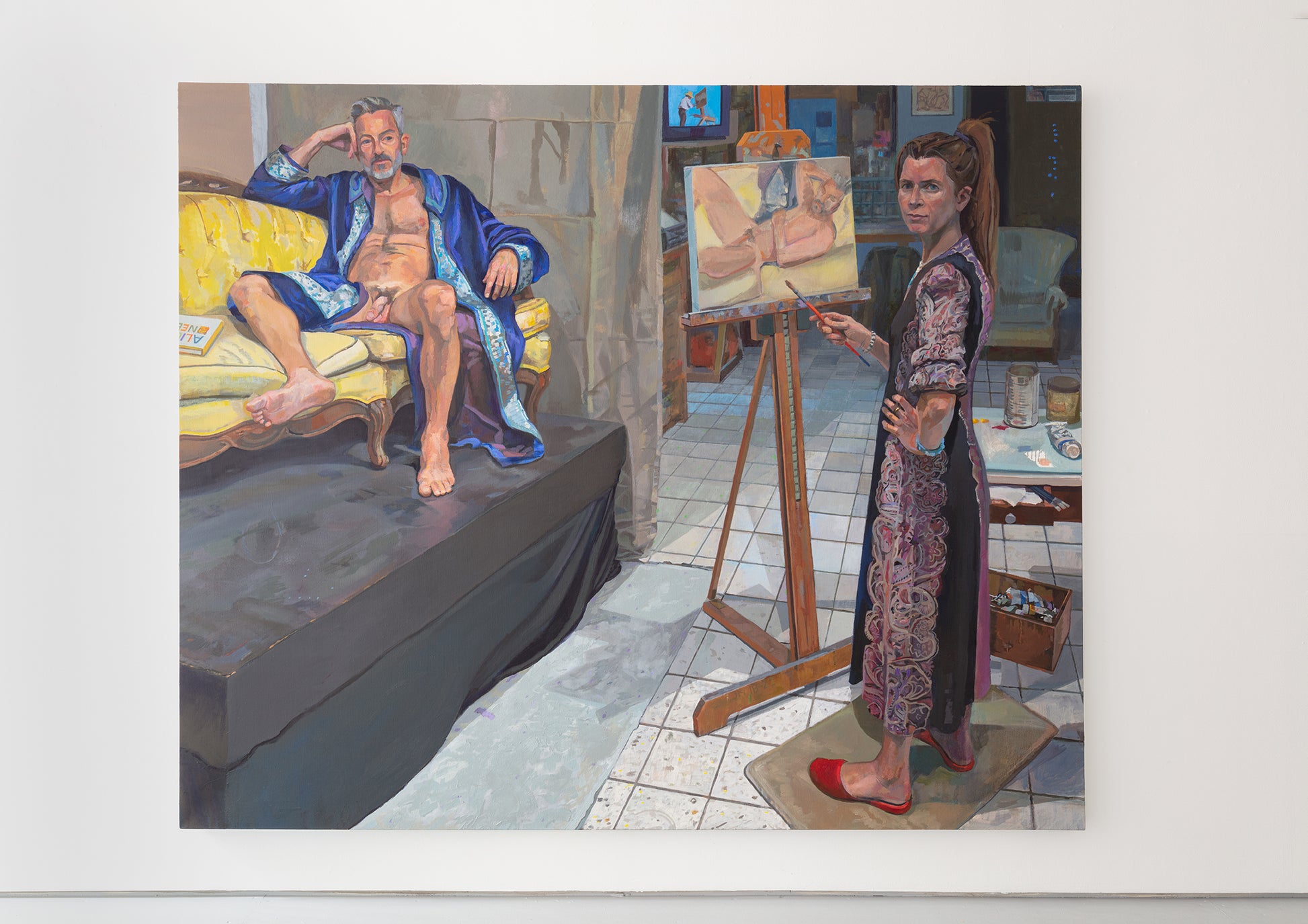 Mitchell continues his steadfast commitment to portraiture within this exhibition, painting his friends, neighbors, and fellow artists through direct observation. “I am a people person,” says Mitchell in an interview with the artist Alix Bailey, published in conjunction with Dreams. “Within the context of our current time of political polarization, cancel culture, social media, smartphones, texting, speed dating, and online video communication—it feels good to slow way down and spend this kind of time in a room with another person for 3 to 6 hours per session, whether it be a one session painting or a more ambitious painting that can go on over months or even years.” Sessions repeat at a set time, week after week, for as long as it takes to complete the project. His method centers around the temporality of appearance and its relationship to time; his paintings reflect the time spent looking at and being with each person. Also on view are small etchings printed as intimate studies of the more significant works.