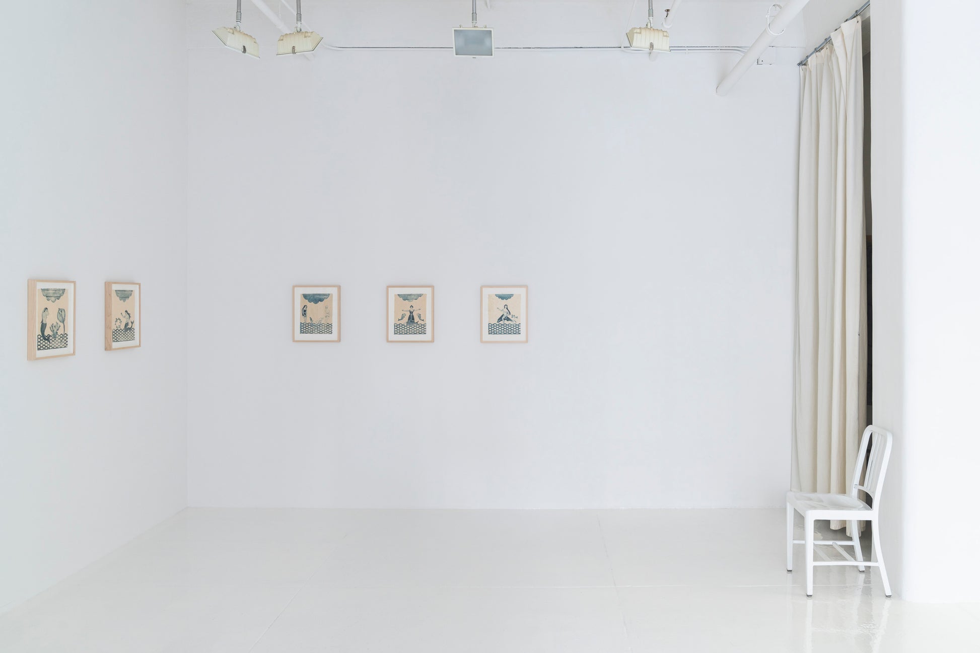 Over the past few years, her prints have been created using plant milk boxes as a matrix. The resulting Tetra-Pak prints are drypoint prints composed of a collage of elements. The Swimmers series began as drawings. There is a growing body of characters and elements that create a narrative. Most of her prints are unique or made in limited editions due to the transience of the materials.