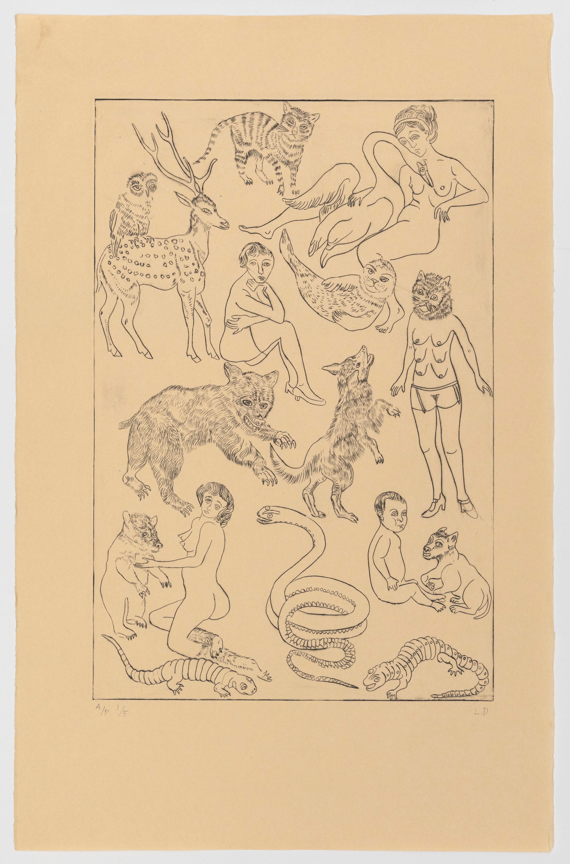 Lauren Drescher was born in New York City and now resides between Auckland, New Zealand and the French Pyrenees. Her work includes printmaking, sculpture and artist books. She uses techniques derived from studio-based practices, adapted for travel so the work can be carried in a suitcase. Freely juxtaposing elements of natural history with a range of personal symbols, the sentience of animals and our lost connection with nature are recurring themes. Recycling and found objects, such as antique paper, are often a catalyst for new projects.