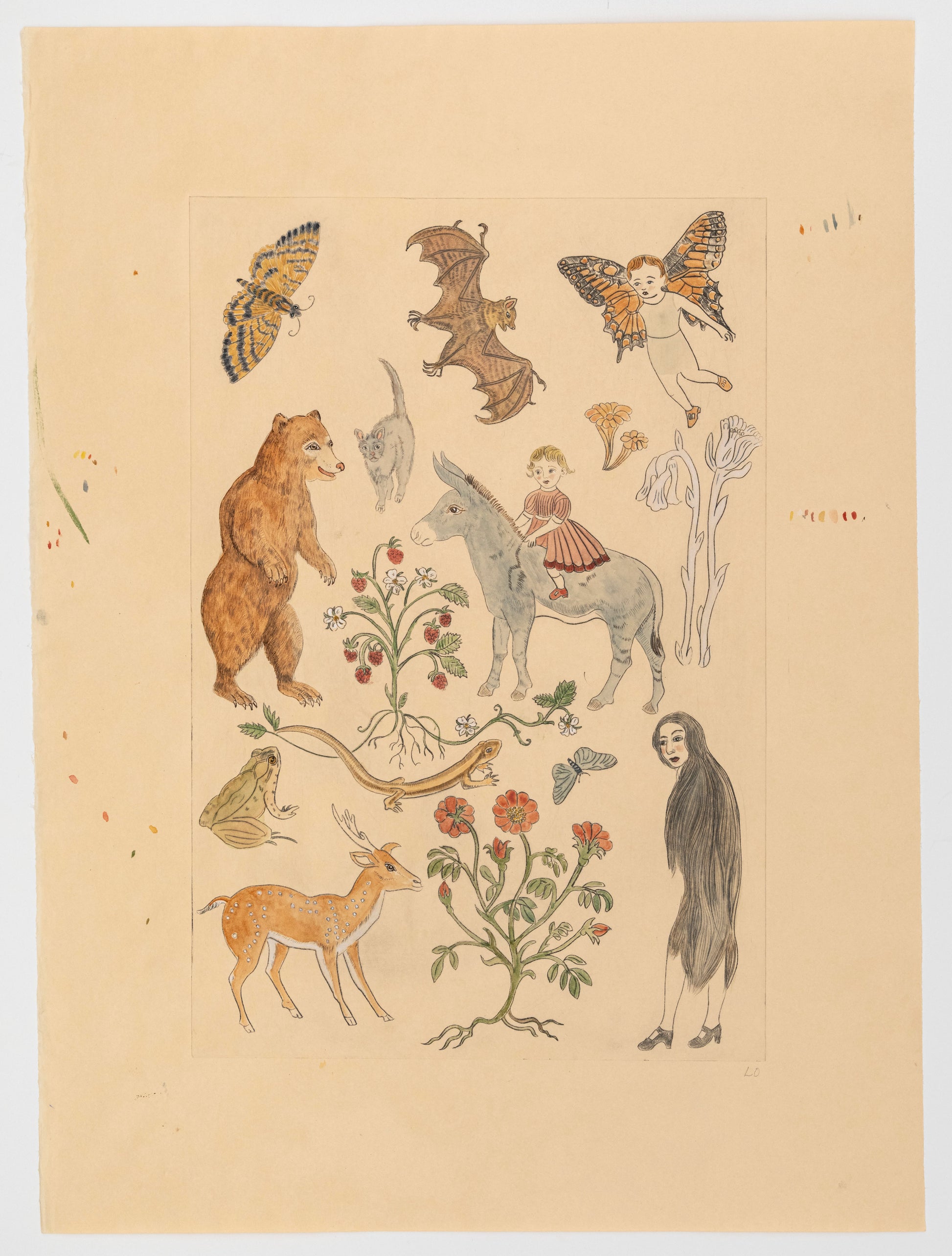 Drypoint and watercolor on Atsukushi paper