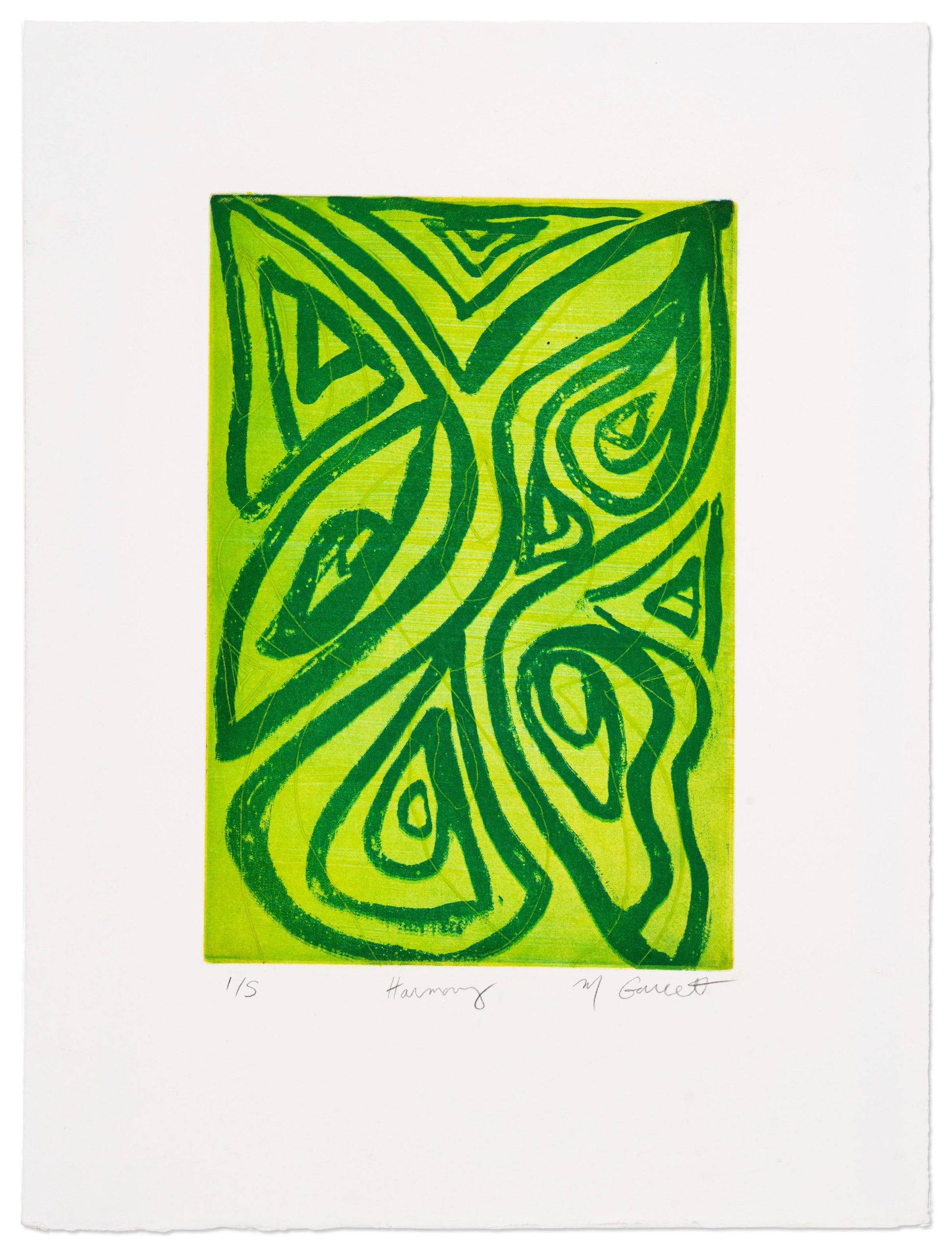 Margaret Garrett is an interdisciplinary American artist. Her artistic practice includes painting, collage, printmaking, and video art. She grew up in Pennsylvania where she trained to be a dancer and joined the Pennsylvania Ballet at the age of 16. She went on to dance with the Cleveland Ballet as a soloist. In her early twenties, she transitioned to visual art, finding something spiritually akin to dance in the movement of line and color. Margaret Garrett's work is held in numerous private and corporate collections in the United States and Europe. Museum collections include Blanton Art Museum, Parrish Art Museum, Jordan Schnitzer Collection, The Leiber Collection, and Guild Hall Museum.
