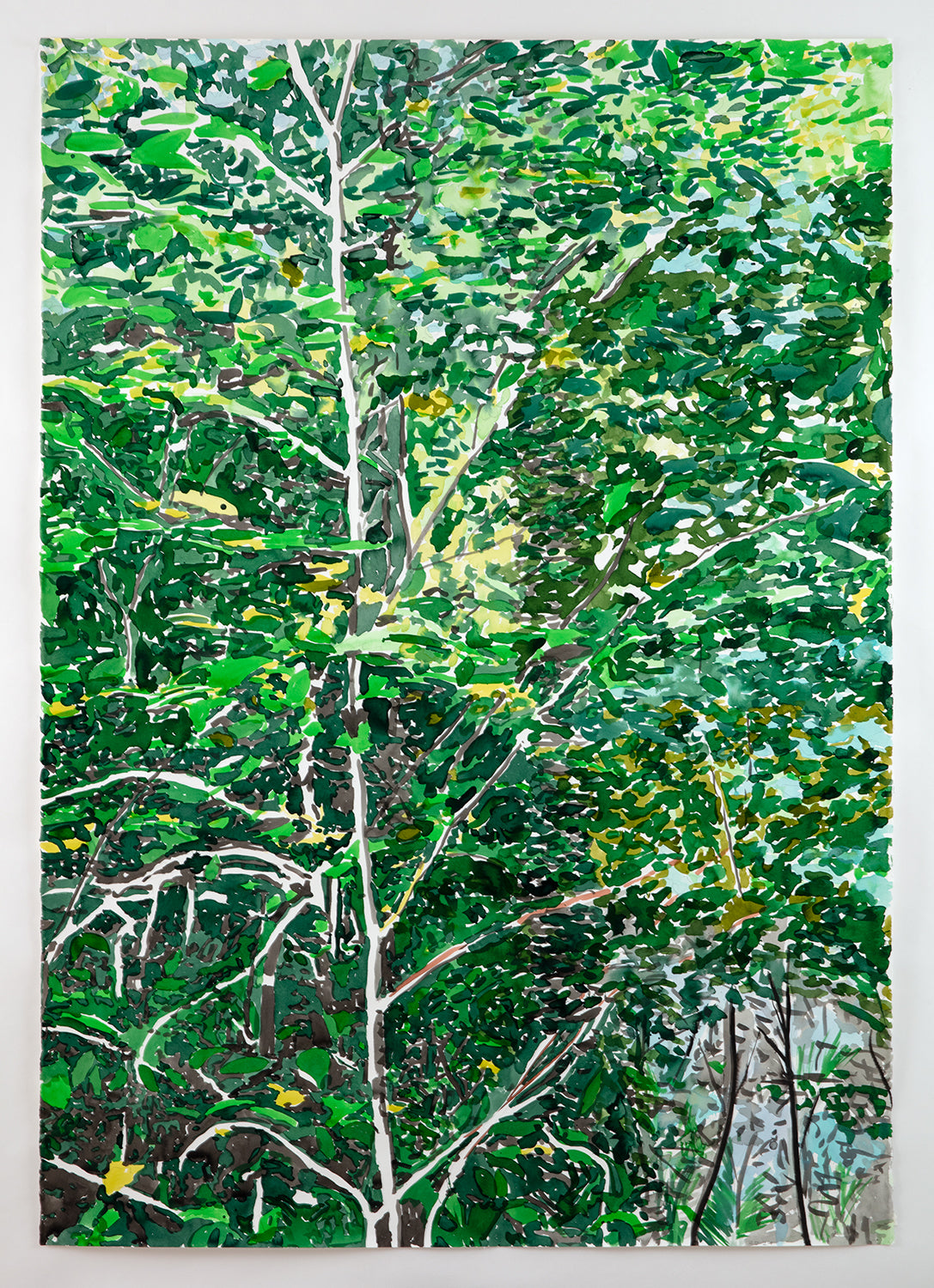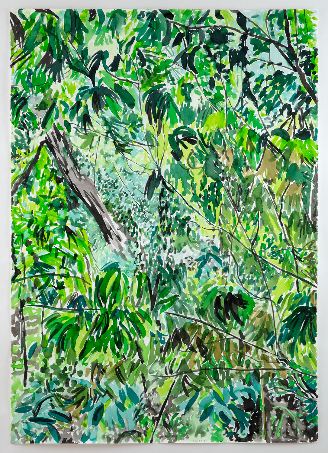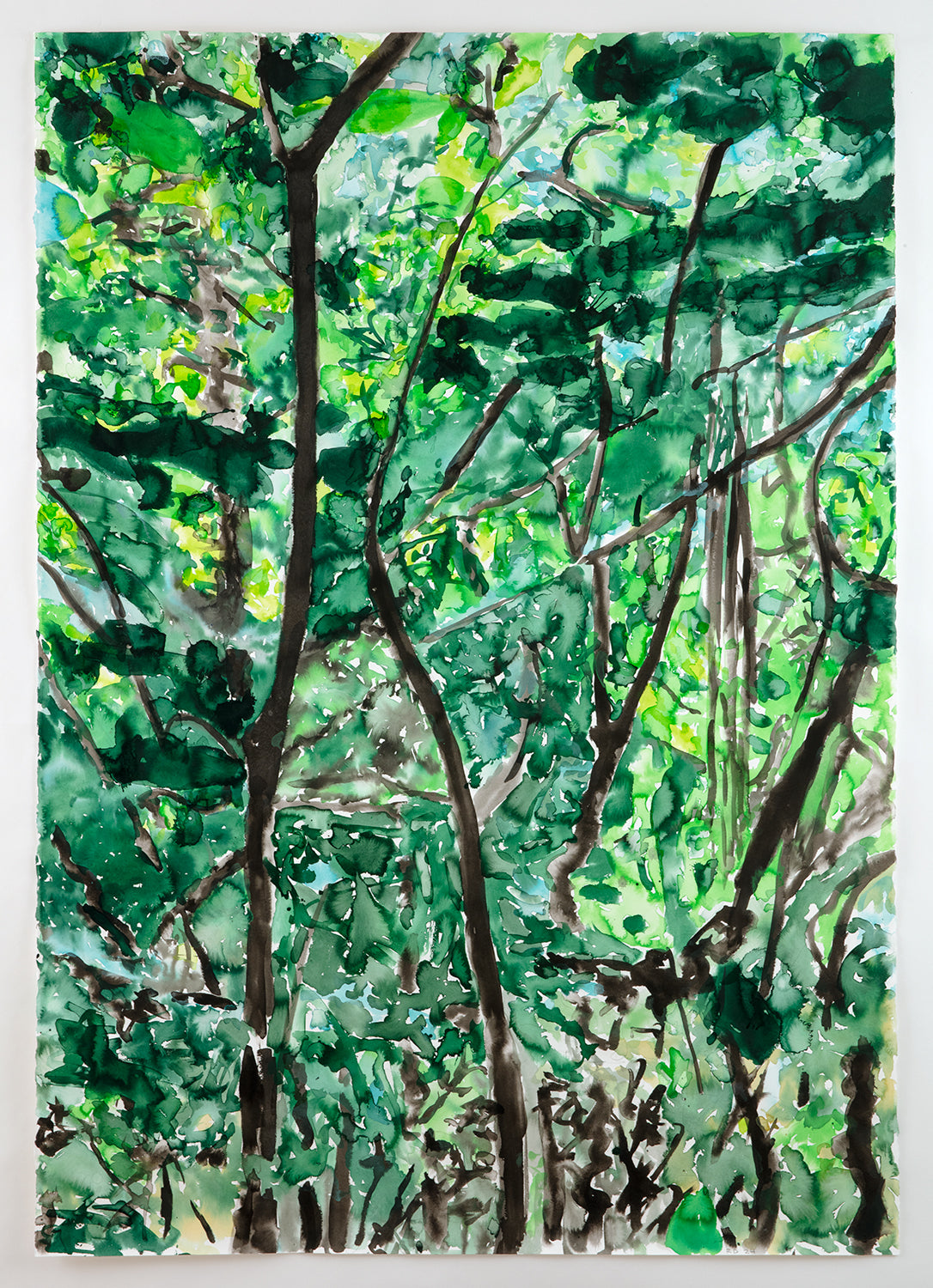 Source material for these works included photographs taken by the artist as well as found photographs and images generated by text prompts with the AI image generator DALL-E. The drawing process, however, was largely automatic. Passages of ink and watercolor were built up gradually and intuitively over a period of weeks. The resulting works exist as approximations of nature, constructions of a fictive place. As such, Passages involve a movement of one state to another, and a desire to escape our increasingly screen-based experience. The act of drawing, and the slowing down of time in the process, provides the means of arriving.