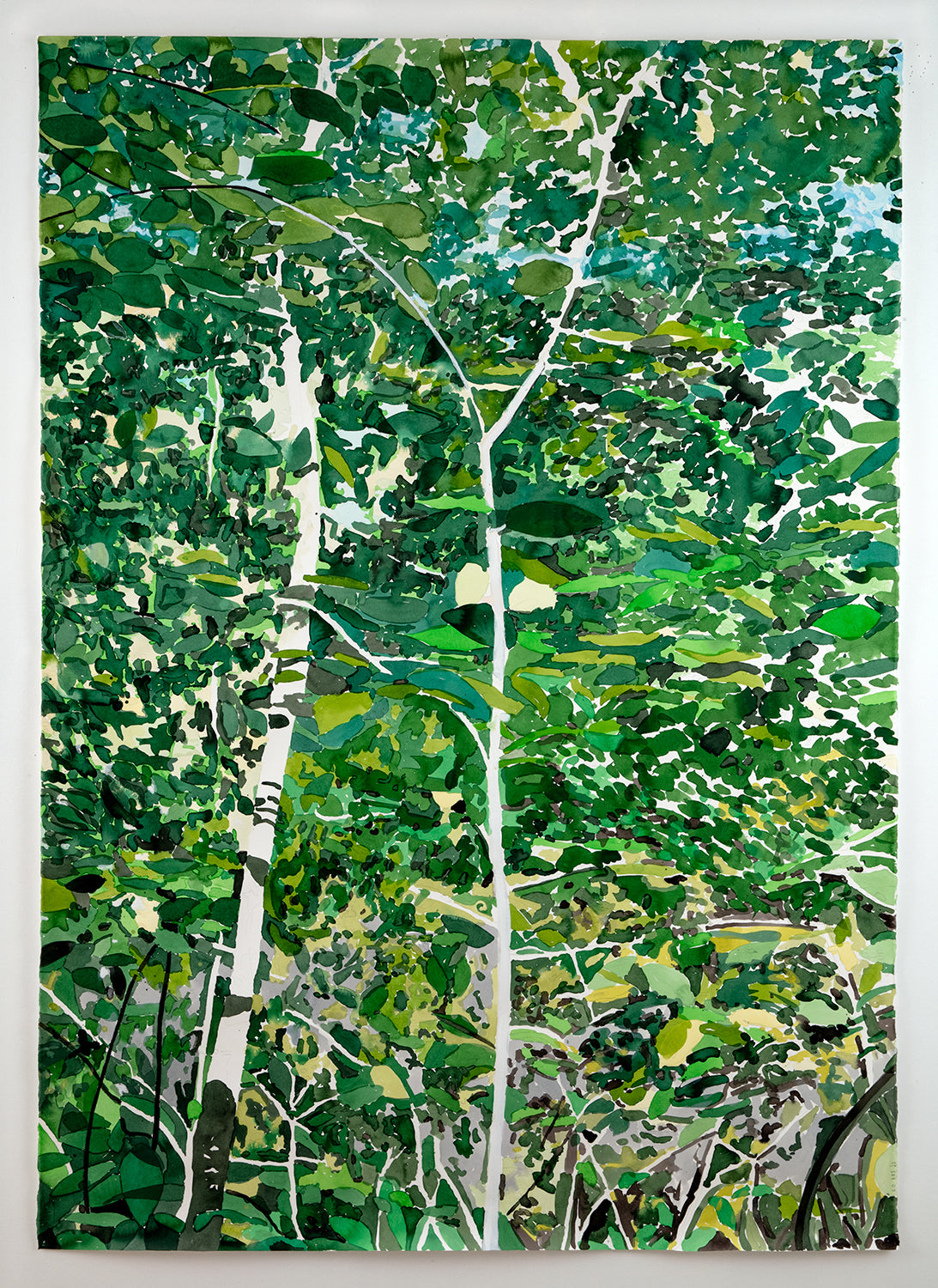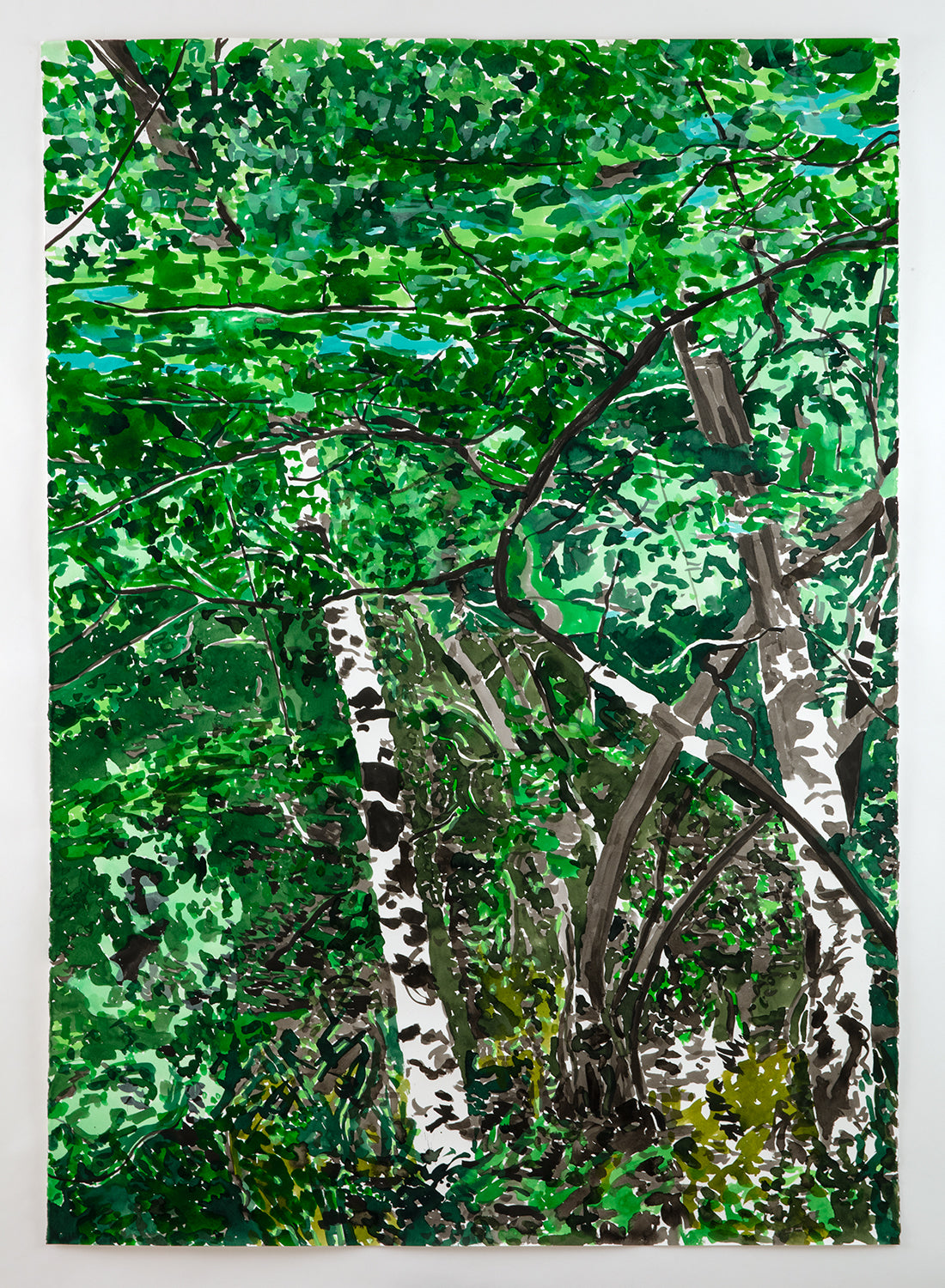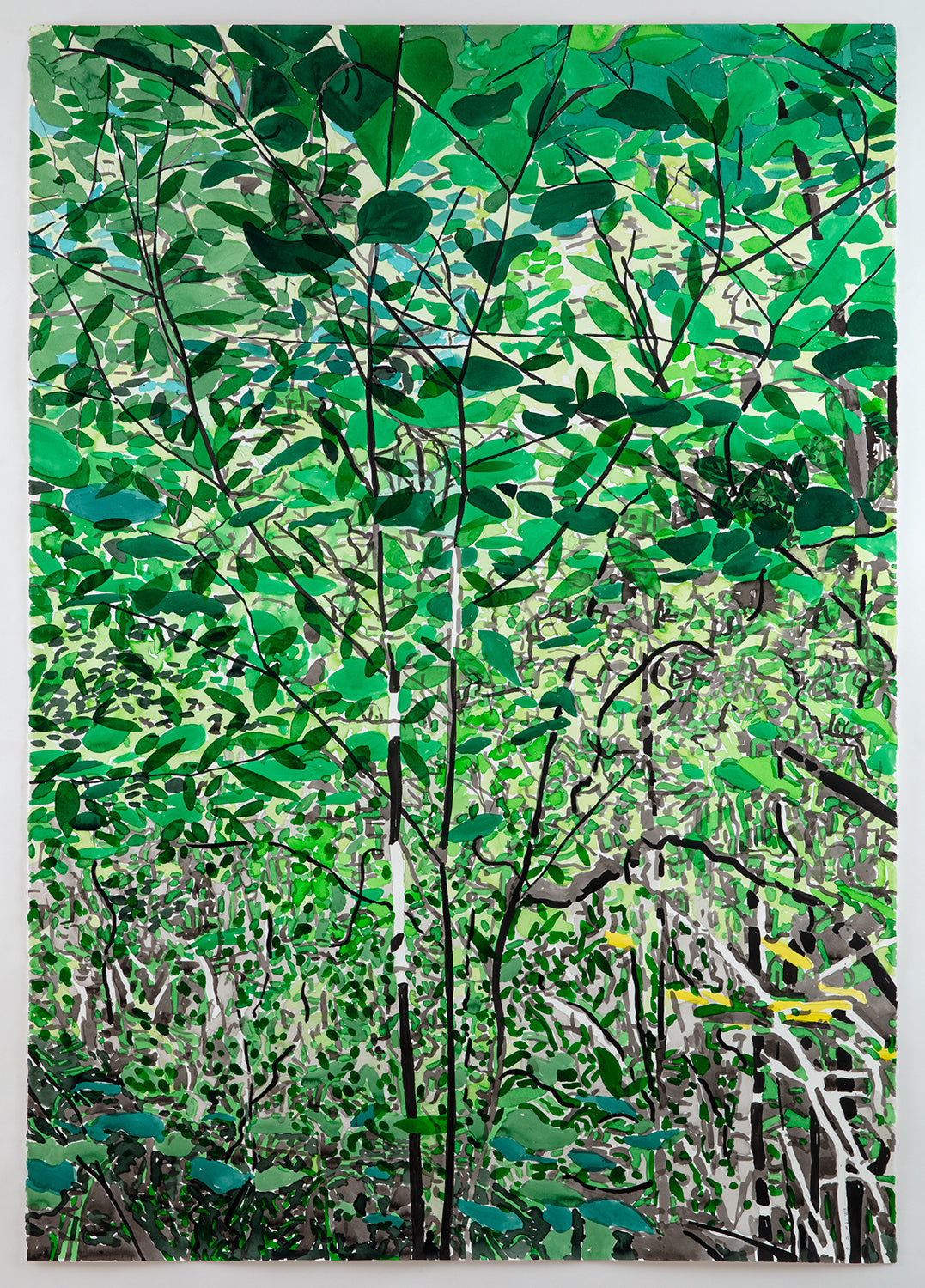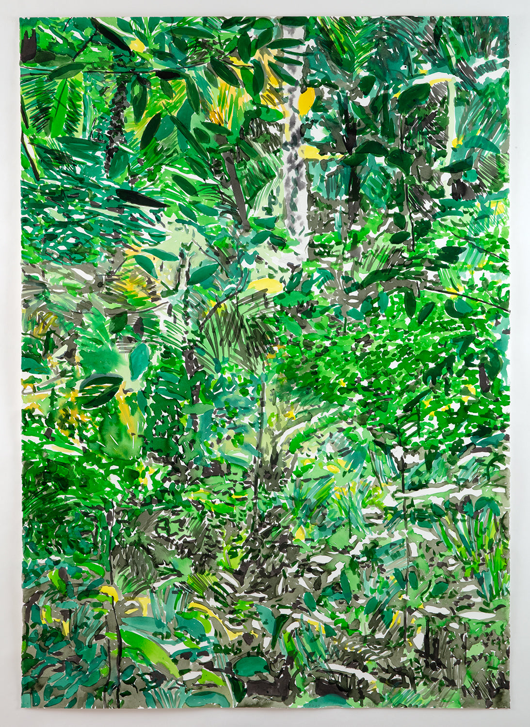 Source material for these works included photographs taken by the artist as well as found photographs and images generated by text prompts with the AI image generator DALL-E. The drawing process, however, was largely automatic. Passages of ink and watercolor were built up gradually and intuitively over a period of weeks. The resulting works exist as approximations of nature, constructions of a fictive place. As such, Passages involve a movement of one state to another, and a desire to escape our increasingly screen-based experience. The act of drawing, and the slowing down of time in the process, provides the means of arriving.