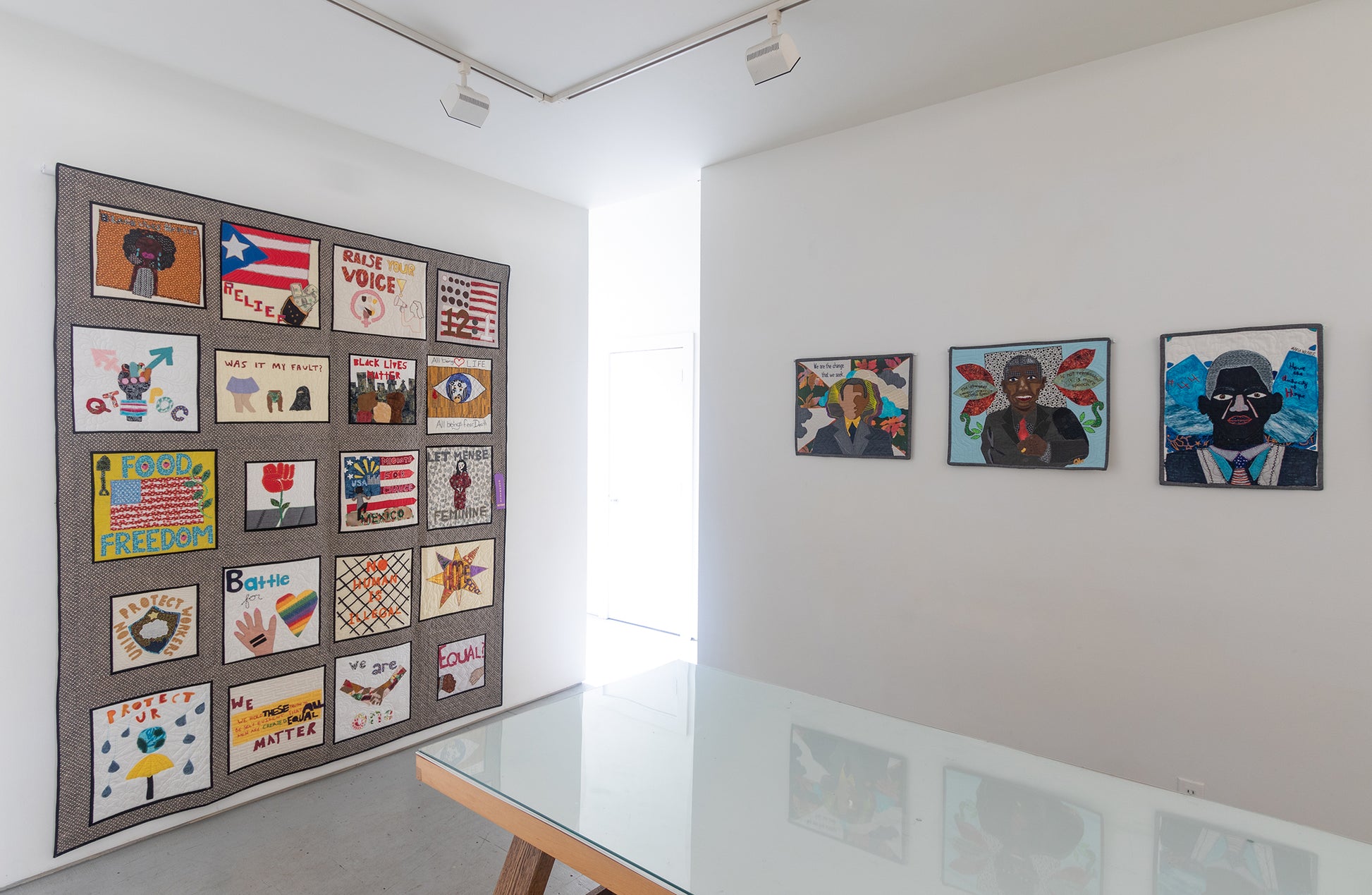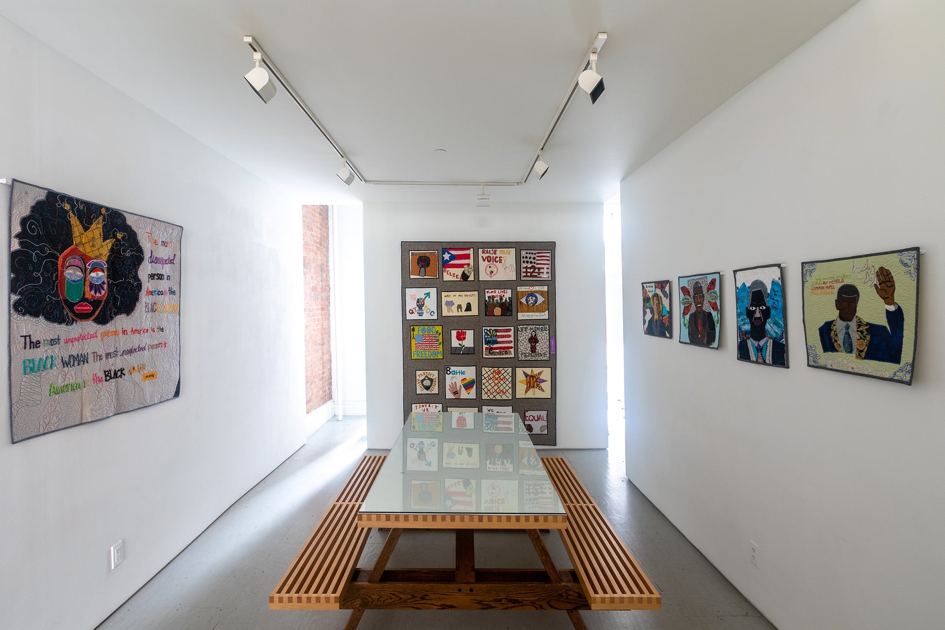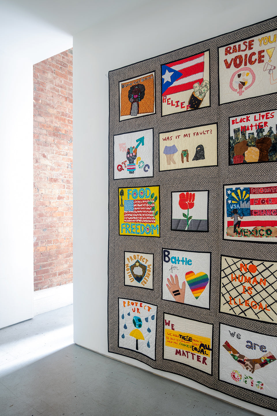 Founded in 2017, the Social Justice Sewing Academy (SJSA) is a non-profit organization that aims to empower individuals to utilize textile art for personal transformation, community cohesion, and to begin the journey toward becoming an agent of social change. Prior to COVID-19, youth workshops and programs were at the core of the organization.Through a series of hands-on workshops in schools, prisons, and community centers across the country, SJSA used social justice and art education to bridge artistic expression with activism. Many of their young artists made art that explored issues such as gender discrimination, mass incarceration, gun violence, and gentrification. The powerful imagery that youth created in cloth demonstrated their critique of issues plaguing their local and larger communities. These quilt blocks are then sent to volunteers around the world to embellish and embroider before being sewn together into quilts to be displayed in museums, galleries, and quilt shows across the country.