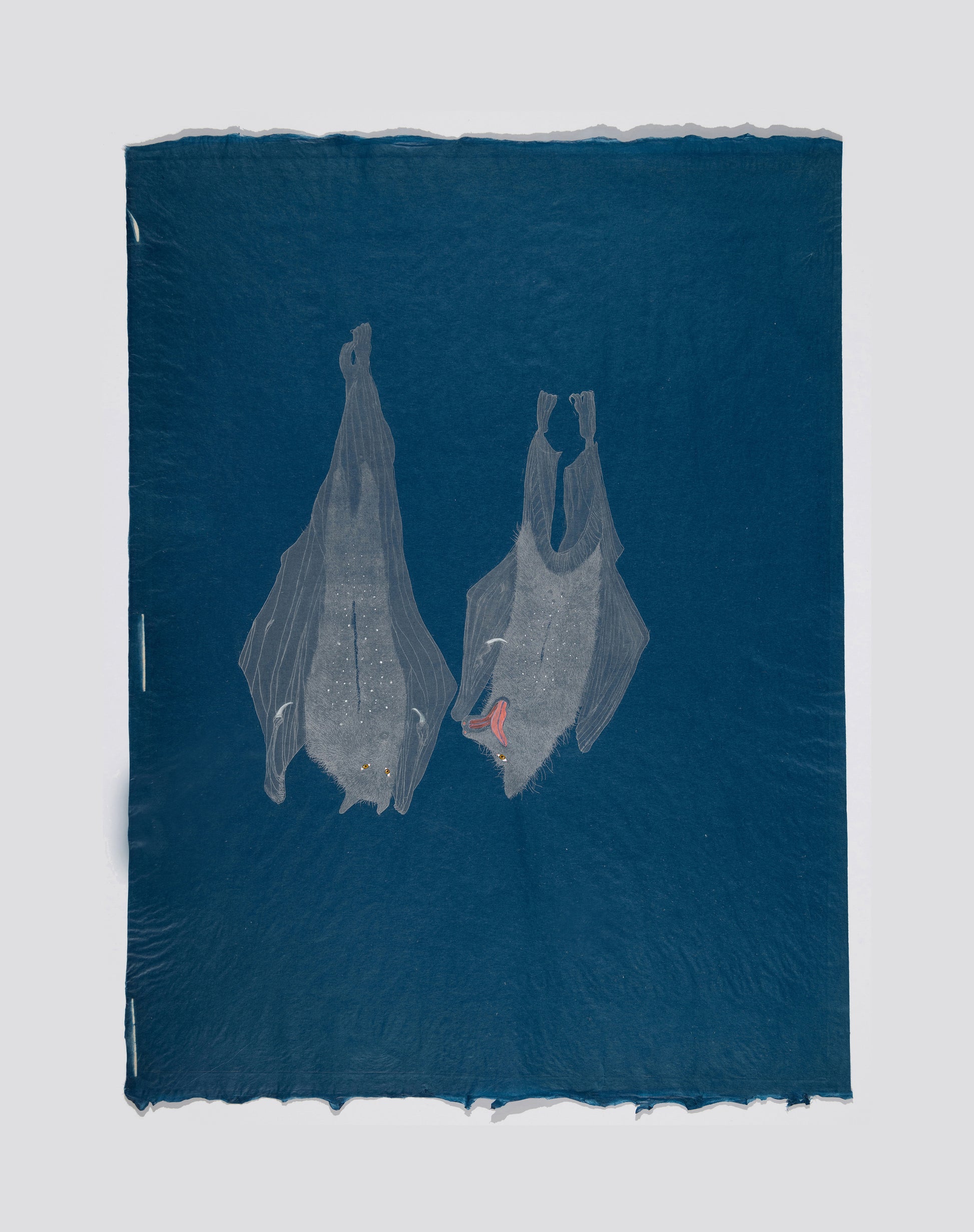 Ink and watercolor on handmade indigo-dyed Gampi paper